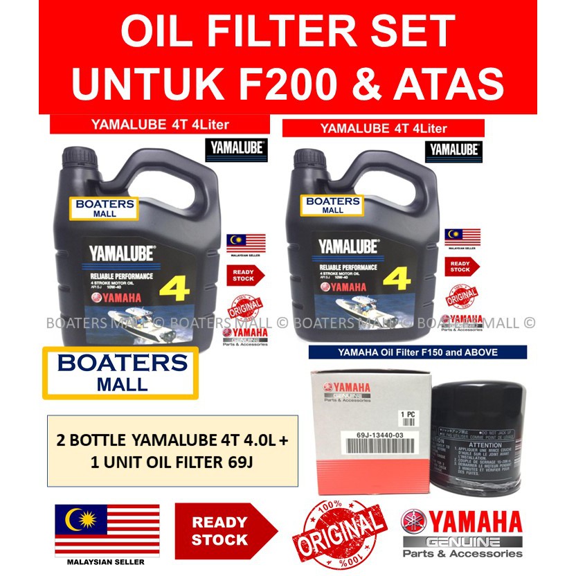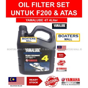 YAMAHA YAMALUBE 4T 4.0L x 2 bottles + YAMAHA OIL FILTER 69J-13440-03 MAINTENANCE SERVICE PACKAGE SET UNTUK F200 & ATAS
