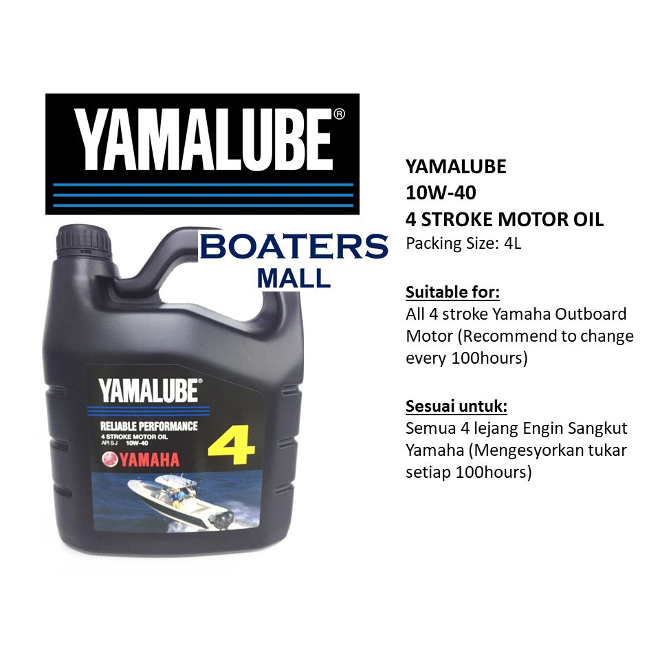 Outboard 4 stroke motors work harder than automotive motors. They require more protection than regular automotive oils can give. Yamalube 4 stroke Outboard Oil is formulated with special additives selected premium base oils to provide the best protection for Yamaha 4 stroke outboards motos.